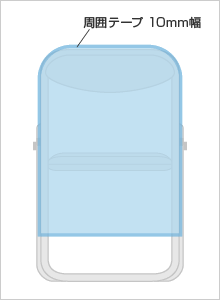 背中側と中側の2枚をつなぐ周囲テープは、単色で色指定が可能です。